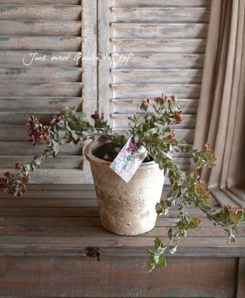 冬にはほんのり赤く紅葉し、グリーンと重なりアンティークカラーに。