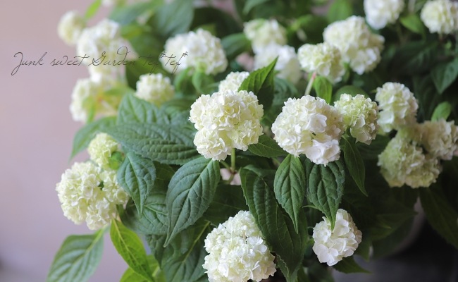 淡いライムグリーンから白や薄ピンクとなる手毬咲きの品種で、小輪多花性の山紫陽花です!