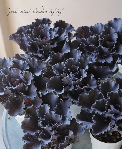 艶感のないマットな漆黒色の葉色が特徴の葉牡丹です^^