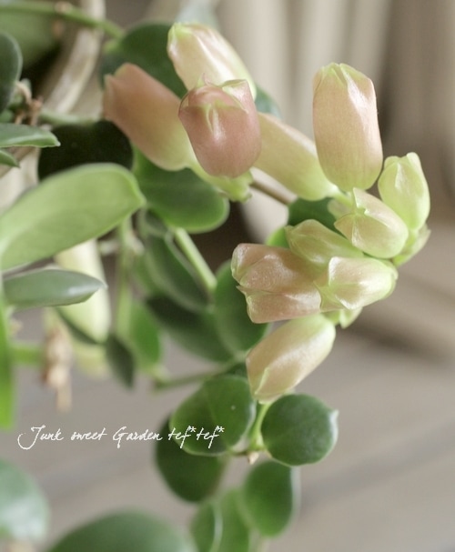 葉に肉厚がある、枝垂れ系多肉植物で、常緑の半つる性の着生植物です^^