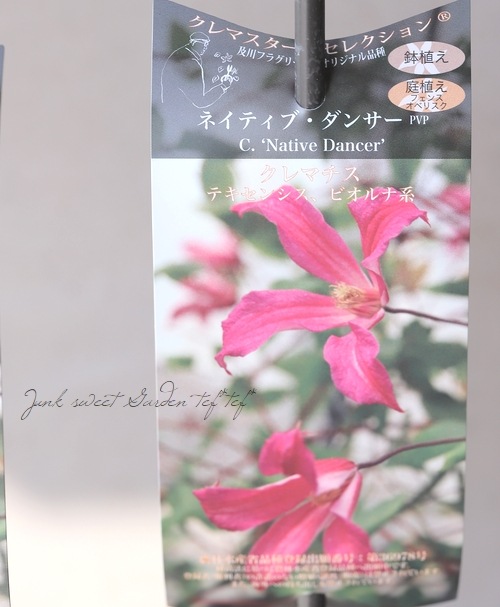 トップ > Flower Species > クレマチス > 【及川フラグリーン】 クレマチス・テキセンシス・ビオルナ系 『ネイティブ・ダンサー』