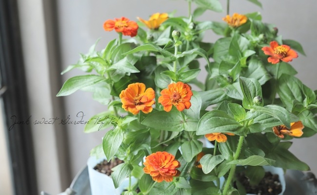 ライム〜オレンジの花色がとっても素敵なジニアです^^