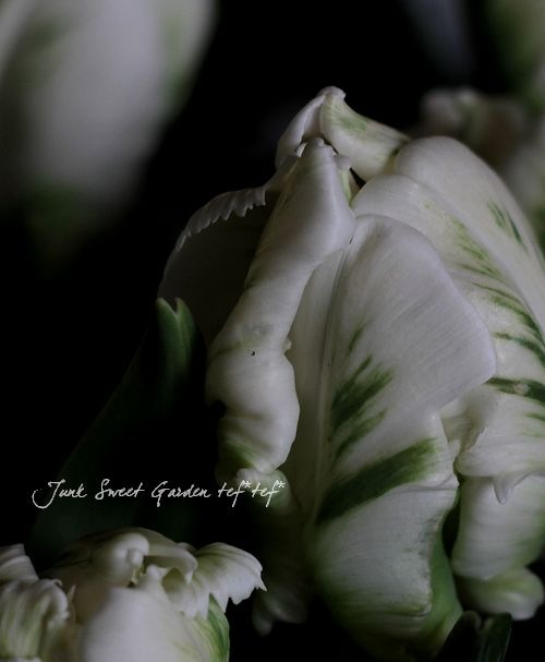 蕾の時はオウムのくちばしみたいな形で、咲くとオウムの羽のような変わり咲きのチューリップです^^